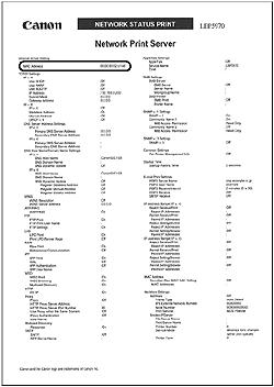 ], then press [OK]. The MAC address is indicated in [MAC Address] on the upper left of the Network Status Print.