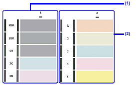 (2) If these patterns have white stripes, the Group2 print head nozzle needs cleaning.