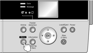 • Printhead cleaning is not possible if POP Board (1.5 mm [0.06 in] thick) is loaded in the Front Paper Feed Slot. Remove the paper before cleaning.