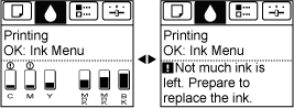 You can replace ink tanks if the Display Screen advises you to check the amount of ink left or replace ink tanks.