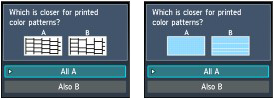 2. Select the pattern that is closer to the printed nozzle check pattern on the confirmation screen.