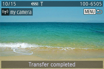 After [Transfer completed] is displayed, the camera returns to the screen shown in step 7.