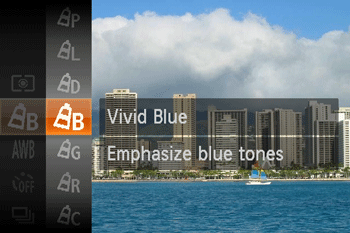 Vivid Blue | Emphasizes blues in images. Makes the sky, ocean, and other blue subjects more vivid. |