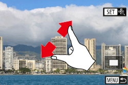 ] button was pressed in the previous magnified image.The LCD monitor is a touch-sensitive panel that you can use to magnify images with your fingers.