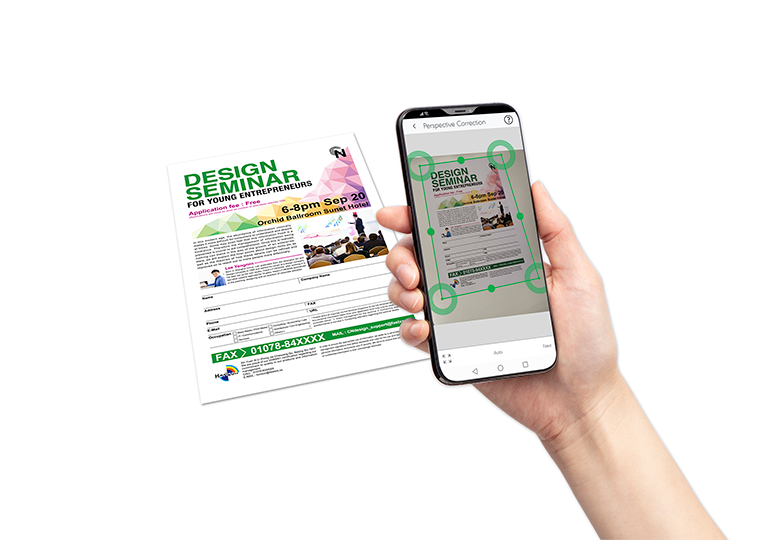 Ambil dokumen atau gambar dan membuat salinan dengan menggunakan ponsel cerdas Anda. Anda juga dapat membuat koreksi perspektif pada gambar sebelum mencetak.