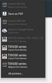 Penampilan Canon Print Service mungkin berbeda, tergantung pada penyesuaian UI tambahan yang disediakan oleh produsen perangkat seluler Anda.