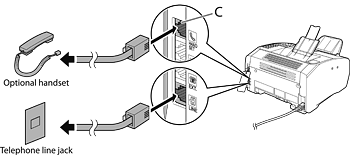 If you have the optional handset, connect the cable to the handset jack (C) on the back side of the machine.