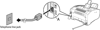 Connect the supplied telephone cables to the telephone line jack (A) on the back side of the machine and the wall jack.