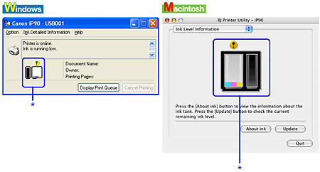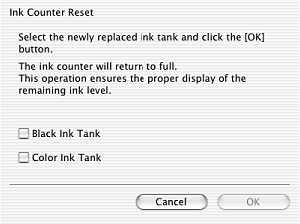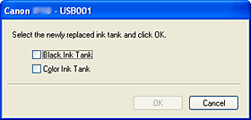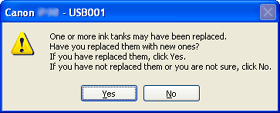 Mistakenly clicking No instead, will prevent the low ink warning from functioning properly. If this happens, be sure to open the driver's Properties dialog box and manually reset the ink tank counter in the Maintenance tab.