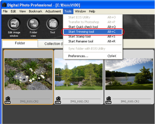1. Start Digital Photo Professional and select an image to be trimmed.