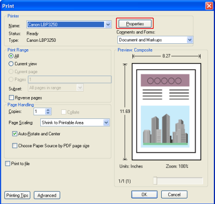2. Open the PDF file to be printed using Adobe Reader.