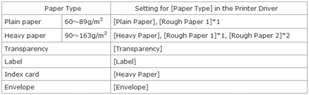 *1 If a paper jam occurs or if you want to improve the fixation when printed with [Plain Paper] or [Heavy Paper] selected, select [Rough Paper 1].