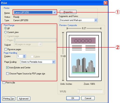 This section describes the procedure for printing from an application, taking Adobe Reader 8.0 as an example.
