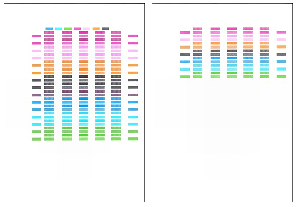 (3)Hold down the RESUME/CANCEL button until the Power lamp flashes green four times, then release it immediately. The print head alignment pattern will be printed and the printer will adjust the print head position automatically. Do not perform any other operations until the printer completes the printing of the print head alignment pattern.