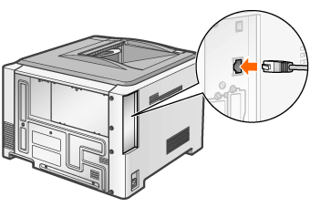 1. Connect the LAN cable to the LAN connector of this printer.