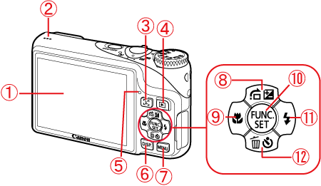 (Display) Button | ![]() | (Self-Timer) / (Single Image Erase) / Button |
