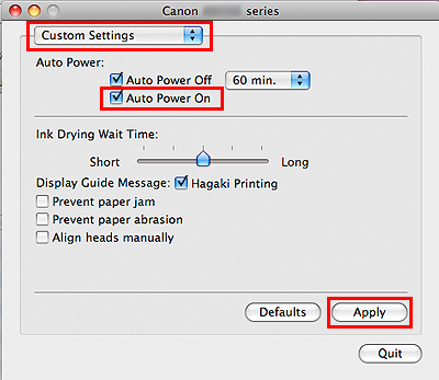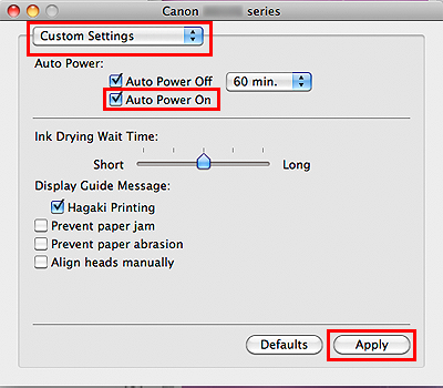 (3) Select [Auto Power On] in [Custom Settings], then click [Apply].