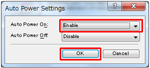 (3) Select [Enable] in [Auto Power On], then click [OK].