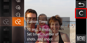 a new face. You can use this when the photographer wants to be in the image, such as a group photo. | - To cancel shooting with the timer after countdown has started, touch the screen.