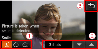 - You should switch to another mode when you finish shooting, or the camera will continue taking shots each time the camera detects a smile.