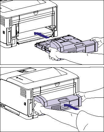 Push the duplex unit into the printer firmly and horizontally as shown in the figures.