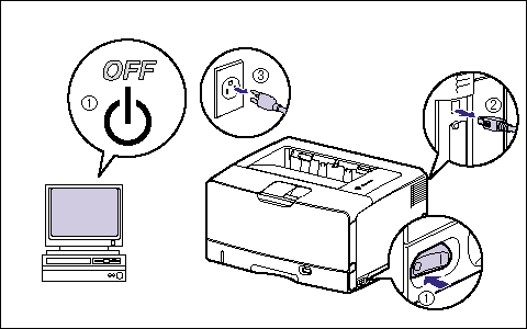 1. Turn the printer and computer OFF, remove the USB cable, and then disconnect the power plug from the AC power outlet.