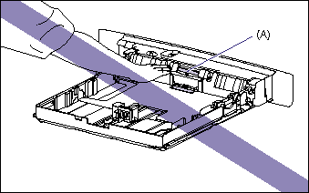d. Do not touch the feed roller (A) in Cassette 2. This may result in misfeeds.