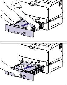 b. Refill the paper cassette after all the loaded paper runs out. If the cassette is refilled when paper still remains in the cassette, it may result in misfeeds.