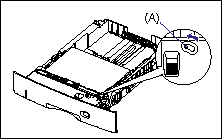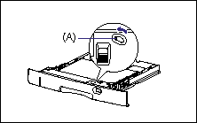 7. Holding the tab of the paper size setting switch (A), set it to the left.