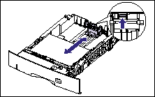 i. The paper cassette cannot be pulled out horizontally. If you try to pull it out forcefully, this may result in damage to the paper cassette.