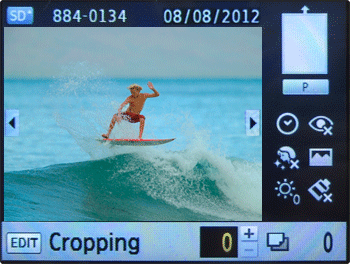 - The cropping frame switches between portrait and landscape each time you press the EDIT button.