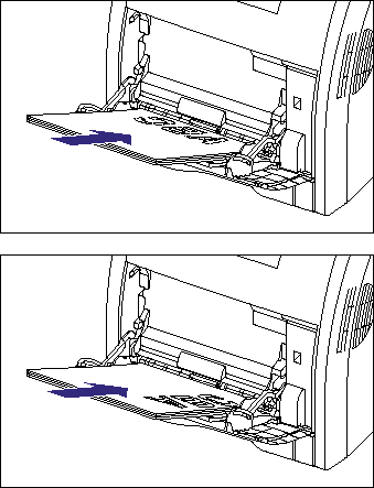 - When loading paper at a size of A4, B5, A5, Legal, Letter, Executive, Statement, Foolscap, or 16K inportrait orientation, load the paper so that the printing side is facing down as shown in the following figure.