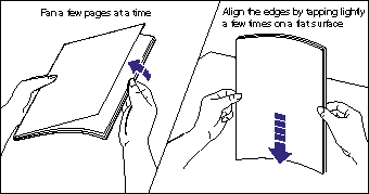 n. If you use paper that has been poorly cut, multiple sheets of paper may be fed at once. In this case, fan the paper thoroughly, and then align the edges of the stack on a hard, flat surface.