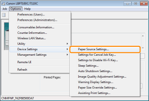 2. From the [Options] menu, select [Device Settings] → [Paper Source Settings].