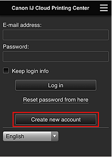 To perform Cloud printing, log in to Canon Inkjet Cloud Printing Center by entering the e-mail address and password that you registered.