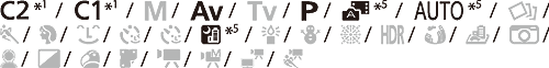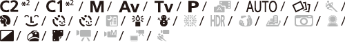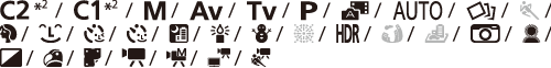 *5 One shot (cannot be modified) in modes without selection of the number of shots.