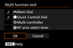 It will not be possible to operate the Main Dial, Quick Control Dial, Multi-controller, and AF area selection lever if [