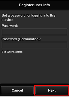 (3) In the user information entry screen, enter your [ Password ], and select [ Next ].