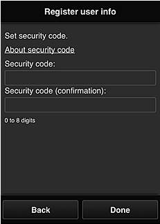 (6) Enter the [ Security code ] and select [ Done ].