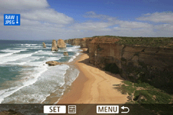: Crop/aspect ratio] is set to an option other than [Full-frame]. JPEG images generated from RAW images will be saved with the cropping area or aspect ratio that was set.