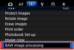 ] dial to select [RAW image processing], then press [