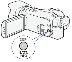 With the camcorder turned off, press the BATT. INFO button to display for about 5 seconds a screen showing the approximate battery charge level. Note that if the battery charge is too low, the battery information screen may not appear.